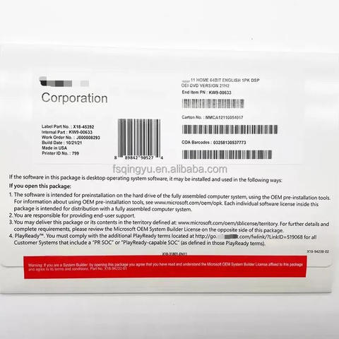 Win 10 home สติกเกอร์ OEM Coa 100% การเปิดใช้งานออนไลน์ Win 10 Home OEM stickers ชนะ10 Home COA จัดส่งเร็ว